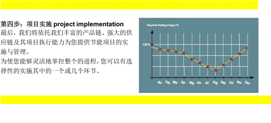 第三步:节能方案制定基于精确的能源分析,我们为您量身定制技术上及经济上可行的节能实施方案。您可以得到技术方案、实施方案、计划及实施时间表、投资及回报周期等实施细节。使您方便地对节能项目作出正确决策。