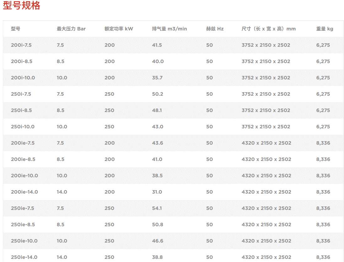 - 更加高效,空气流动更佳:压缩机主机具有优化的转子齿形,将效率提升并拥有更大排气量